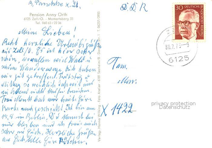 73550009 alte Postkarte Zell Odenwald Pension Anny Orth postalisch gelaufen Erhaltung siehe scans [WerneD78] KatCode: 11110006437001