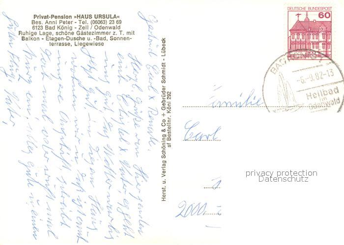 73124289 alte Postkarte Zell Odenwald Privat Pension Haus Ursula postalisch gelaufen Erhaltung siehe scans [KathaD81] KatCode: 11110006437001
