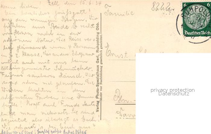 42964131 alte Postkarte Zell Ruhpolding Teilansicht mit Kirche postalisch gelaufen Erhaltung siehe scans [AndreD76] KatCode: 11110009189140