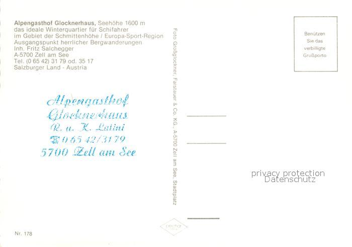 73198178 Zell See Alpengasthof Glocknerhaus postalisch nicht gelaufen Erhaltung siehe scans [KathaD81] KatCode: 11390322050628