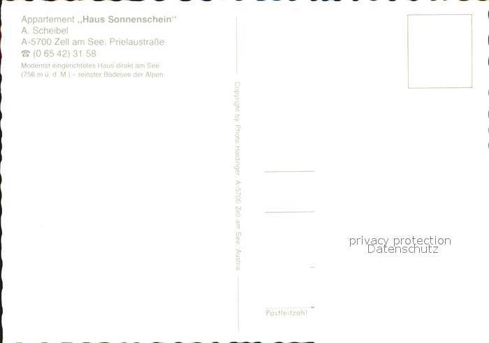 12568855 Zell See Appartement Haus Sonnenschein postalisch nicht gelaufen Erhaltung siehe scans [NatalD47] KatCode: 11390322050628