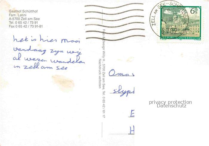 74097637 alte Postkarte Zell See AT Gasthof Schuetthof postalisch gelaufen Erhaltung siehe scans [WerneD78] KatCode: 11390322050628