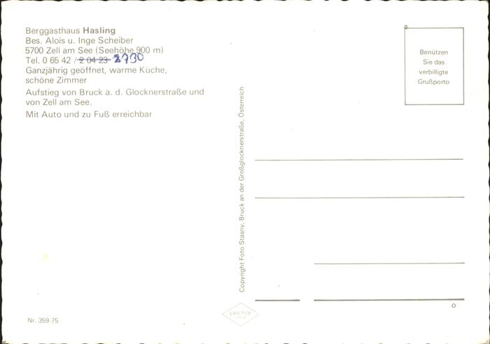 71431643 Zell See Berggasthaus Hasling Alpenpanorama postalisch nicht gelaufen Erhaltung siehe scans KatCode: 11390322050628