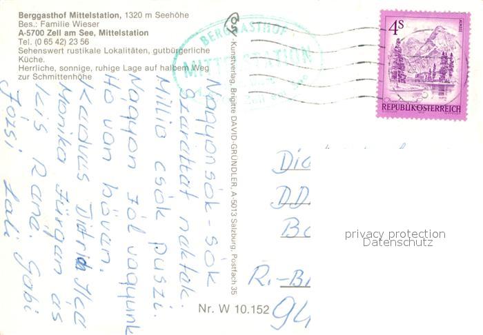 73033406 alte Postkarte Zell See Berggasthof Mittelstation postalisch gelaufen Erhaltung siehe scans [PaolaD17] KatCode: 11390322050628