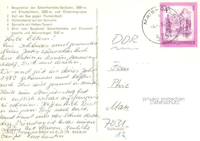 73629103 alte Postkarte Zell See Bergstation Zell am See Huettenabend Sonnalm Hohe Tauern Berghotel Schmittenhoehe Elisabethkapelle postalisch gelaufen Erhaltung siehe scans [WerneD78] KatCode: 11390322050628
