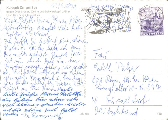 71435085 alte Postkarte Zell See Blick gegen Drei Brueder Schwarzkopf Kurstadt postalisch gelaufen KatCode: 11390322050628