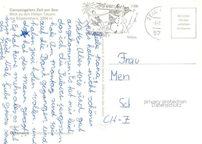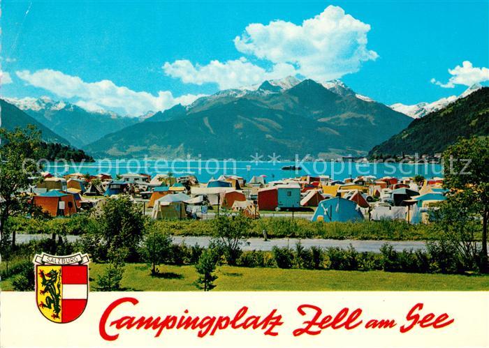 73043526 alte Postkarte Zell See Campingplatz am See Blick zu den Hohen Tauern postalisch gelaufen Erhaltung siehe scans [FriedD77] KatCode: 11390322050628
