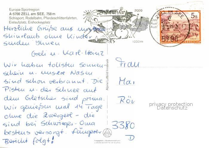 72697661 alte Postkarte Zell See Europa Sportregion Wintersportplatz Schuettdorf Kitzsteinhorn Hohe Tauern Fliegeraufnahme postalisch gelaufen Erhaltung siehe scans [FriedD77] KatCode: 11390322050628