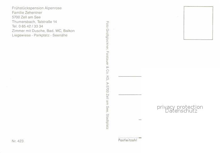 12871397 Zell See Fruehstueckspension Alpenrose postalisch nicht gelaufen Erhaltung siehe scans [PaolaD17] KatCode: 11390322050628