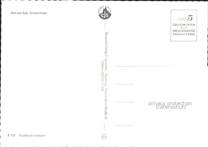 72922951 Zell See Grand Hotel postalisch nicht gelaufen Erhaltung siehe scans [PaolaD17] KatCode: 11390322050628