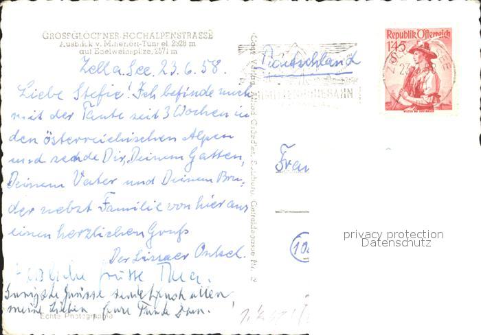 72366638 alte Postkarte Zell See Grossglockner Hochalpenstrasse Tunnel Edelweissspitze postalisch gelaufen Erhaltung siehe scans KatCode: 11390322050628