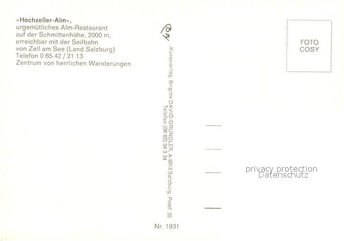 73161909 Zell See Hochzeller Alm Seilbahn postalisch nicht gelaufen Erhaltung siehe scans [KathaD81] KatCode: 11390322050628