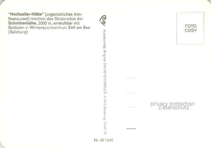 73655796 Zell See Hochzeller Huette Almrestaurant Wintersportplatz Schmittenhoehe Hohe Tauern Alpenpanorama postalisch nicht gelaufen Erhaltung siehe scans [FriedD77] KatCode: 11390322050628