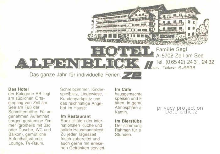72692351 Zell See Hotel Alpenblick Winter postalisch nicht gelaufen Werbekarte (keine Postkarte) Erhaltung siehe scans [KathaD79] KatCode: 11390322050628