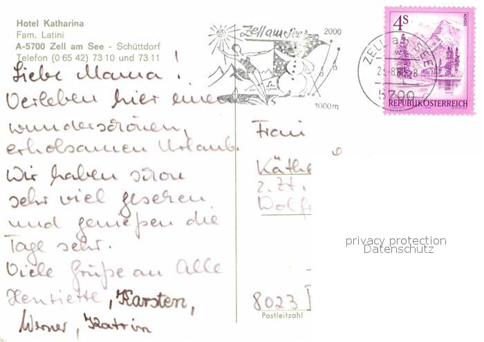 12603947 alte Postkarte Zell See Hotel Katharina postalisch gelaufen Erhaltung siehe scans [LiesaD40] KatCode: 11390322050628