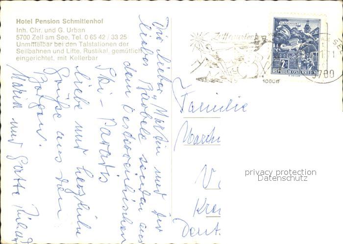 72491624 alte Postkarte Zell See Hotel Pension Schmittenhof Wintersportplatz Hohe Tauern postalisch gelaufen Erhaltung siehe scans KatCode: 11390322050628