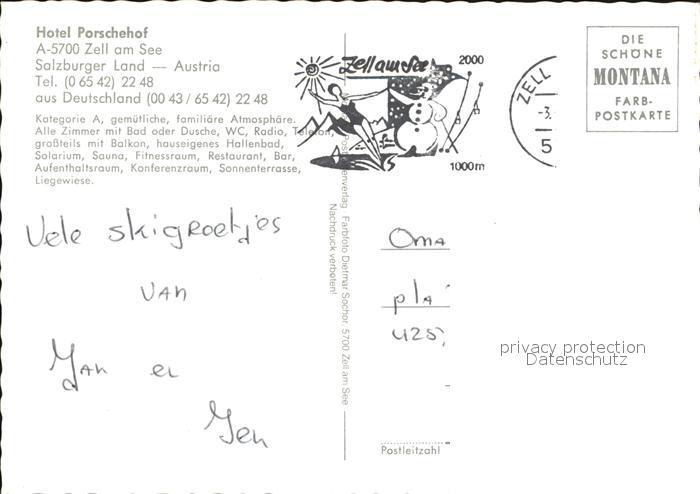 72450293 alte Postkarte Zell See Hotel Porschehof postalisch gelaufen Erhaltung siehe scans KatCode: 11390322050628