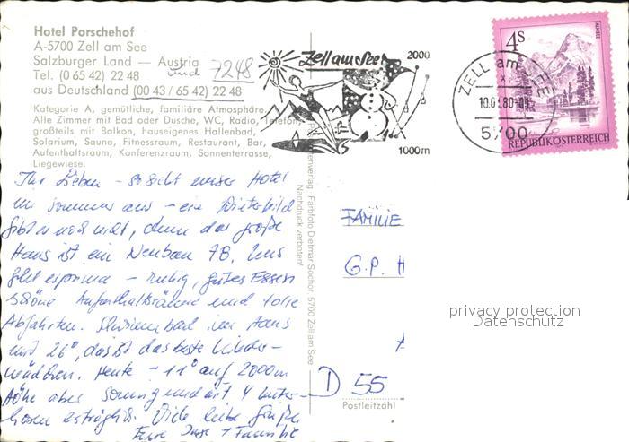 72465578 alte Postkarte Zell See Hotel Porschehof postalisch gelaufen Erhaltung siehe scans KatCode: 11390322050628