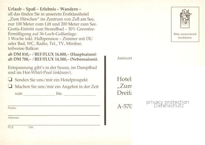73586979 Zell See Hotel zum Hirschen postalisch nicht gelaufen Erhaltung siehe scans [PaolaD17] KatCode: 11390322050628