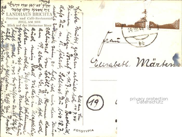 72379323 alte Postkarte Zell See Landhaus Brichta Blick auf das Steinerne Meer postalisch gelaufen Erhaltung siehe scans KatCode: 11390322050628