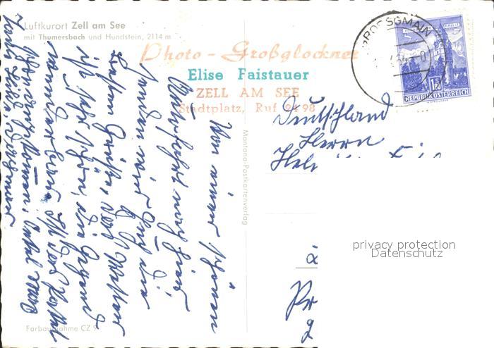72064095 alte Postkarte Zell See mit Thumersbach und Hundstein postalisch gelaufen KatCode: 11390322050628