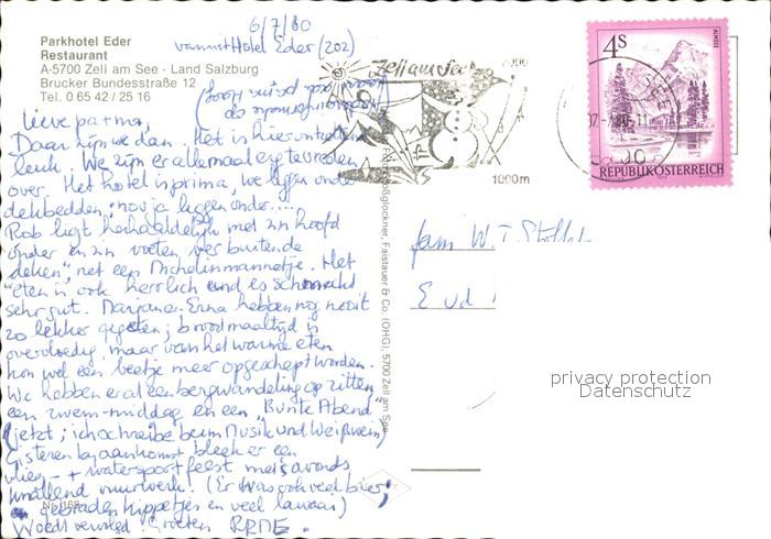 72445493 alte Postkarte Zell See Parkhotel Eder postalisch gelaufen Erhaltung siehe scans KatCode: 11390322050628