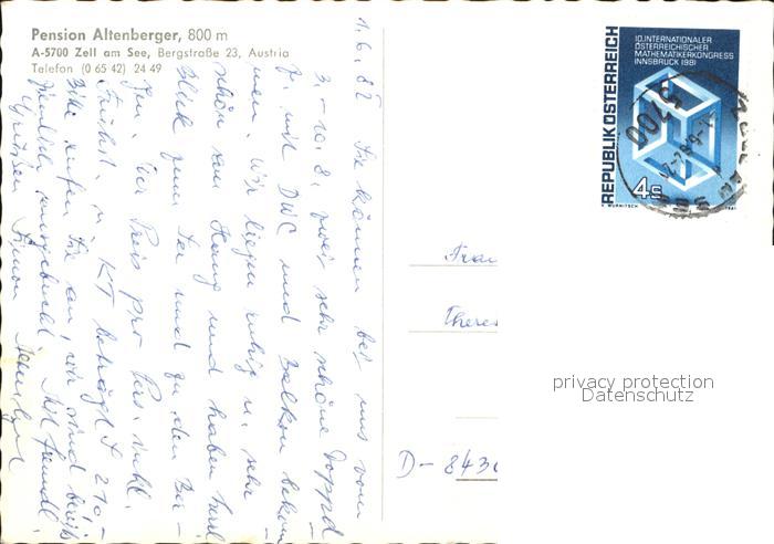 72467056 alte Postkarte Zell See Pension Altenberger postalisch gelaufen Erhaltung siehe scans KatCode: 11390322050628