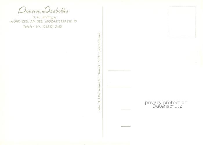43221449 Zell See Pension Isabella postalisch nicht gelaufen Erhaltung siehe scans [WerneD78] KatCode: 11390322050628