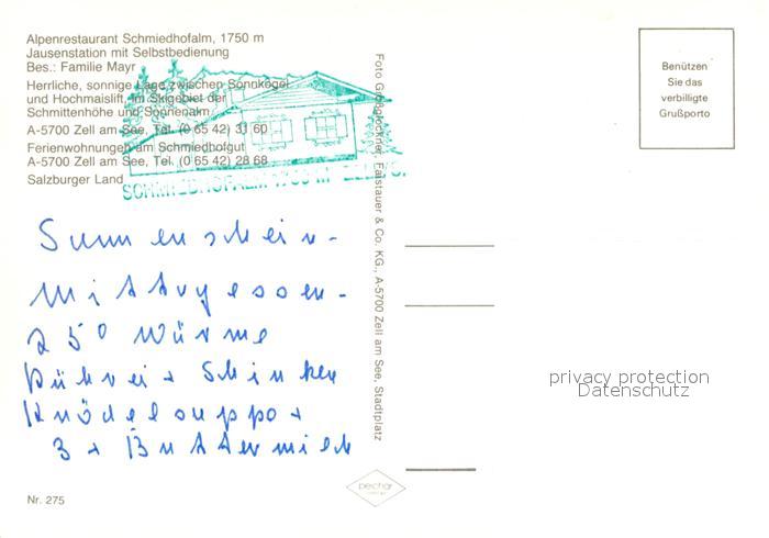 73131446 Zell See Schmiedhofalm postalisch nicht gelaufen Erhaltung siehe scans [NatalD47] KatCode: 11390322050628