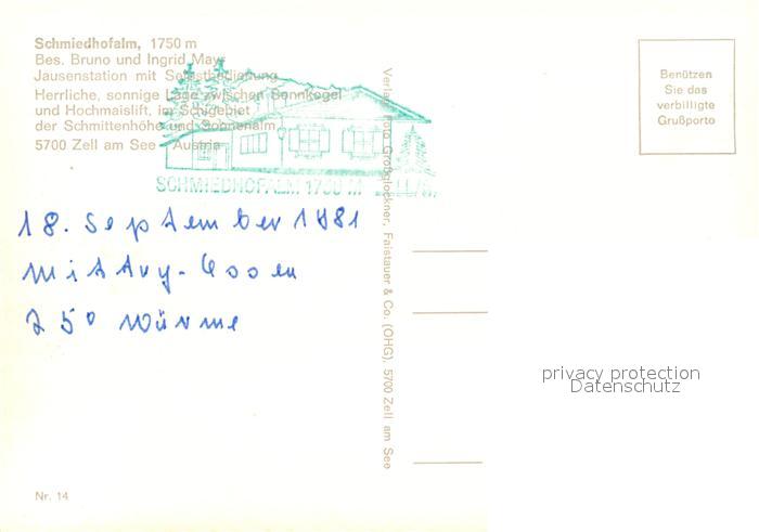 73131443 Zell See Schmiedhofalm postalisch nicht gelaufen Erhaltung siehe scans [NatalD47] KatCode: 11390322050628