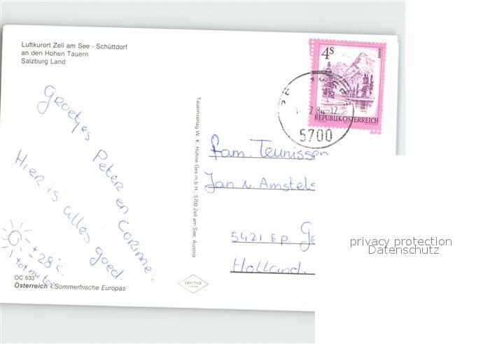 72108557 alte Postkarte Zell See Schuettdorf postalisch gelaufen KatCode: 11390322050628