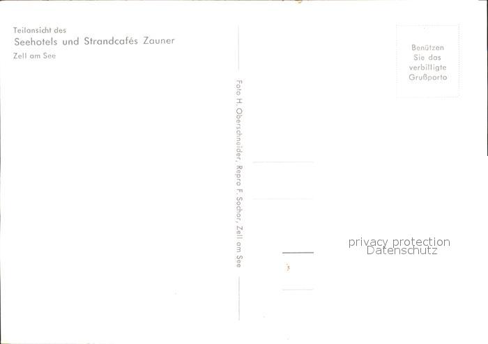 71941921 Zell See Seehotel und Strandcafe Zauner Terrasse Schwan Segelboot postalisch nicht gelaufen Erhaltung siehe scans KatCode: 11390322050628
