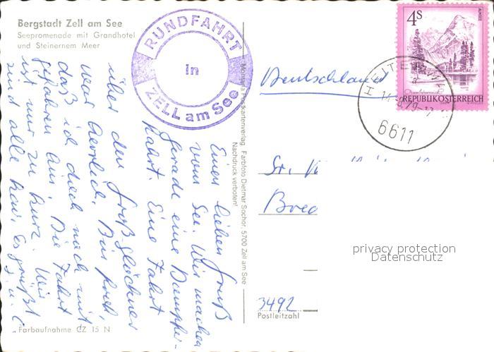 72302567 alte Postkarte Zell See Seepromenade Grandhotel Steinerne Meer postalisch gelaufen Erhaltung siehe scans KatCode: 11390322050628