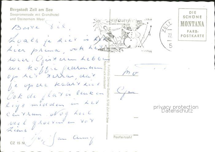 72093090 alte Postkarte Zell See Seepromenade mit Grandhotel und Steinernem Meer Fahrgastschiff postalisch gelaufen Erhaltung siehe scans KatCode: 11390322050628