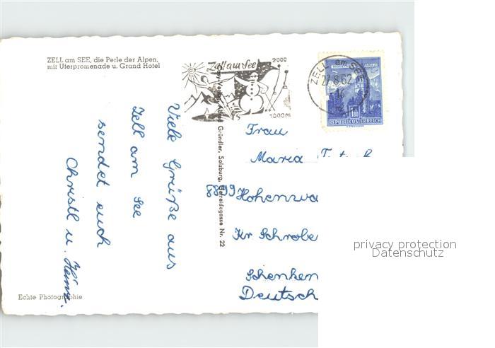 72182856 alte Postkarte Zell See Uferpromenade Grand Hotel postalisch gelaufen Erhaltung siehe scans KatCode: 11390322050628