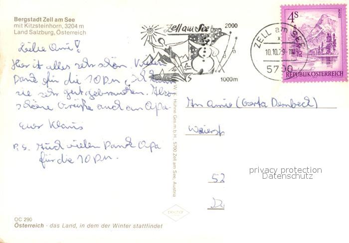 73590248 alte Postkarte Zell See Winterpanorama Blick ueber den See mit Kitzsteinhorn Nachtaufnahme postalisch gelaufen Erhaltung siehe scans [FriedD77] KatCode: 11390322050628