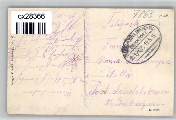 30910571 alte Postkarte Zell Wiesental postalisch gelaufen KatCode: 11110008336103