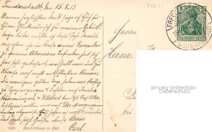 42942320 alte Postkarte Zell Wiesental Bauernhaus postalisch gelaufen Erhaltung siehe scans [AndreD76] KatCode: 11110008336103