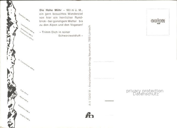 72470761 Zell Wiesental Die Hohe Moehr Aussichtsturm Wandergebiet Schwarzwald Schweizer Zentralalpen postalisch nicht gelaufen Erhaltung siehe scans KatCode: 11110008336103