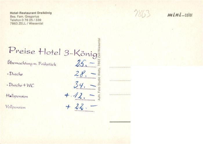 73935162 Zell Wiesental Hotel Restaurant Dreikoenig postalisch nicht gelaufen Erhaltung siehe scans [WerneD78] KatCode: 11110008336103