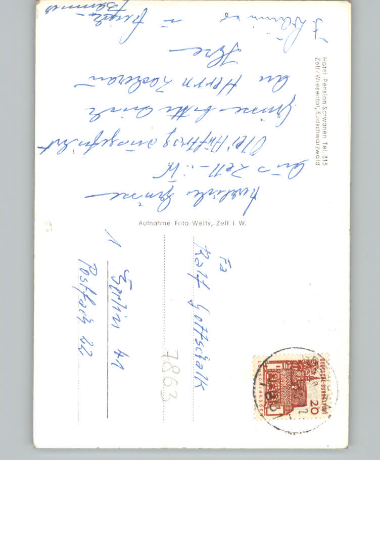 31154562 Zell Wiesental Hotel Schwanen postalisch nicht gelaufen KatCode: 11110008336103