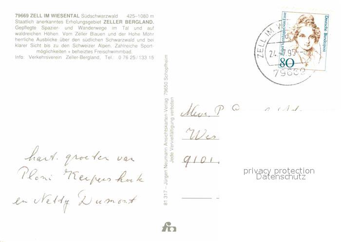 72911022 alte Postkarte Zell Wiesental Ortsmotiv mit Kirche postalisch gelaufen Erhaltung siehe scans [FriedD77] KatCode: 11110008336103