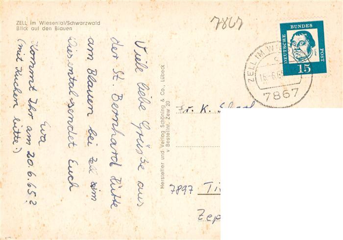 73928290 alte Postkarte Zell Wiesental Panorama mit Blauen postalisch gelaufen Erhaltung siehe scans [WerneD78] KatCode: 11110008336103