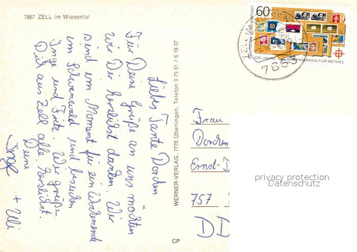 72698382 alte Postkarte Zell Wiesental Teilansicht postalisch gelaufen Erhaltung siehe scans [WerneD78] KatCode: 11110008336103