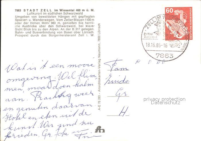 72276595 alte Postkarte Zell Wiesental Teilansicht Kirche postalisch gelaufen Erhaltung siehe scans KatCode: 11110008336103