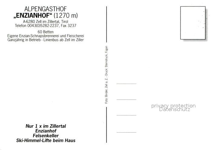 73027907 Zell Ziller Tirol Alpengasthof Enzianhof postalisch nicht gelaufen Erhaltung siehe scans [PaolaD17] KatCode: 11390335070940