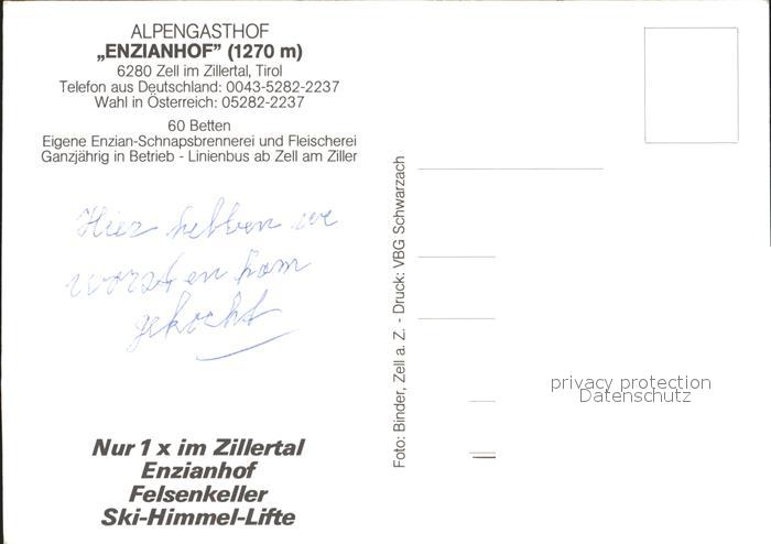 72271739 Zell Ziller Tirol Alpengasthof Enzianhof postalisch nicht gelaufen Erhaltung siehe scans KatCode: 11390335070940