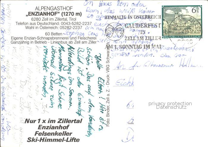 72244807 alte Postkarte Zell Ziller Tirol Alpengasthof Enzianhof postalisch gelaufen Erhaltung siehe scans KatCode: 11390335070940