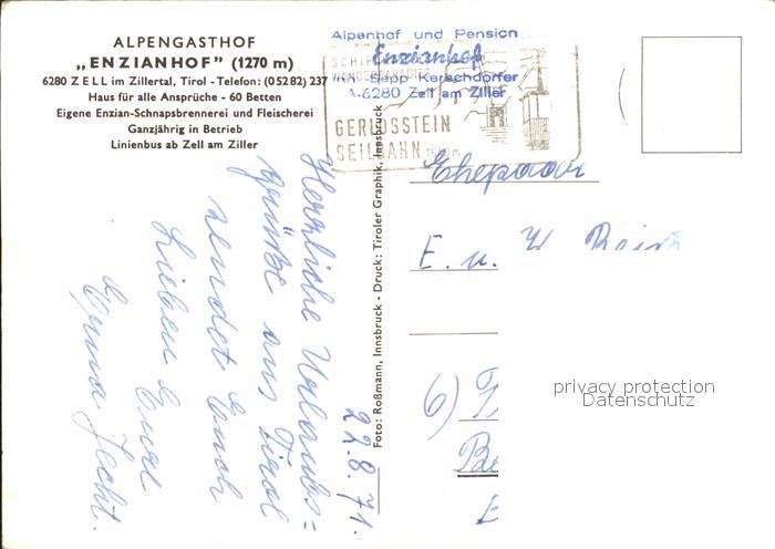 42923735 Zell Ziller Tirol Alpengasthof Enzianhof postalisch nicht gelaufen Erhaltung siehe scans [WerneD48] KatCode: 11390335070940
