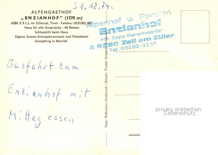 13170944 Zell Ziller Tirol Alpengasthof Enzianhof postalisch nicht gelaufen Erhaltung siehe scans [KathaD81] KatCode: 11390335070940